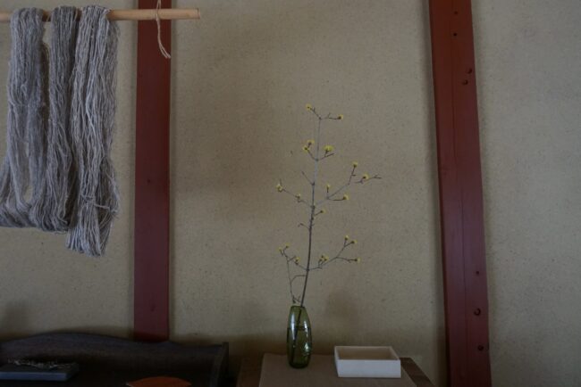部屋にサンシュユの枝を飾りました。