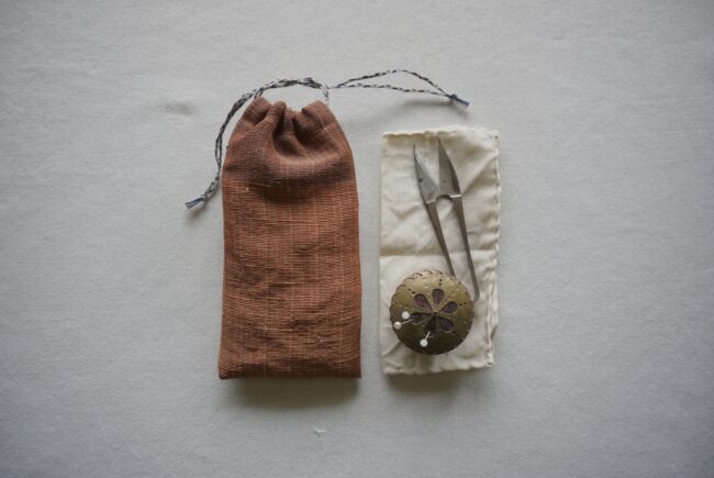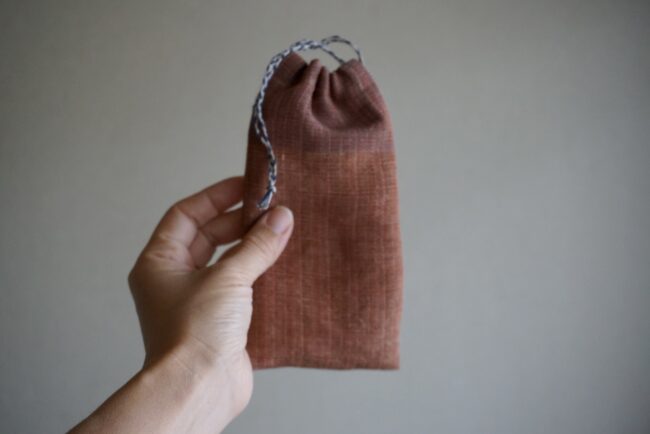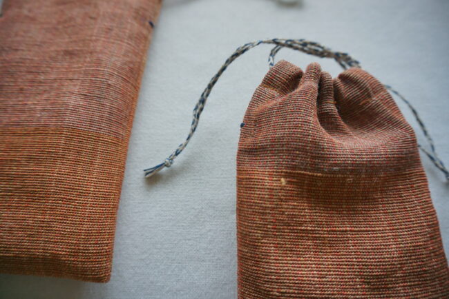 シルクと麻の細長巾着。