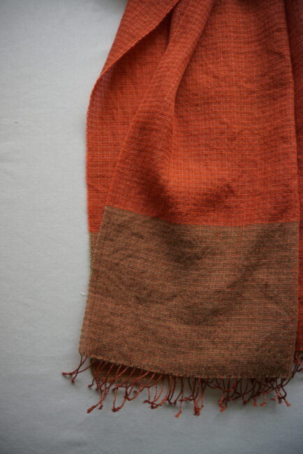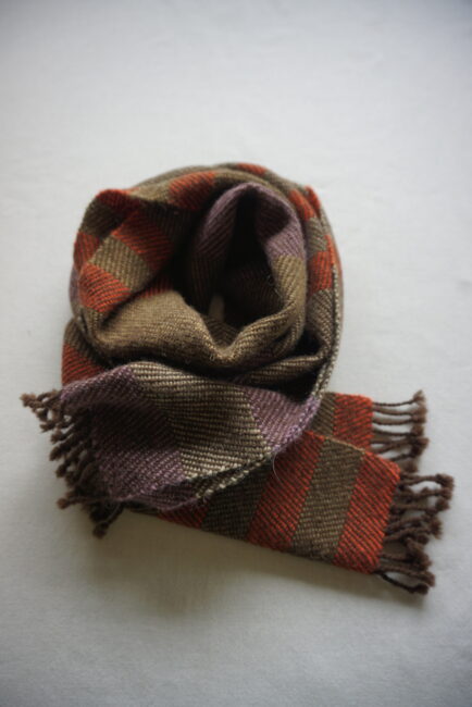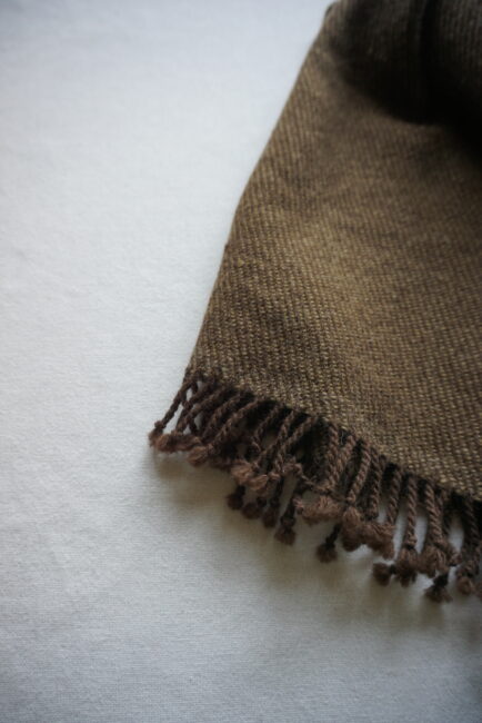経糸のヤクの自然色のチョコレート色、質感も気に入っています。