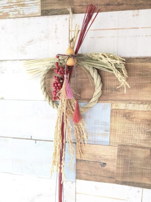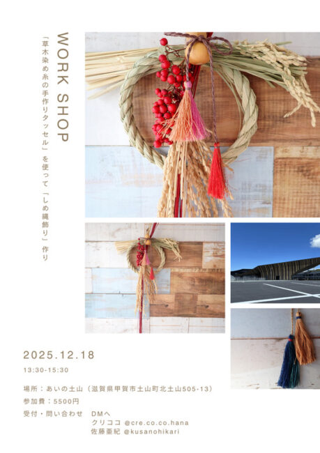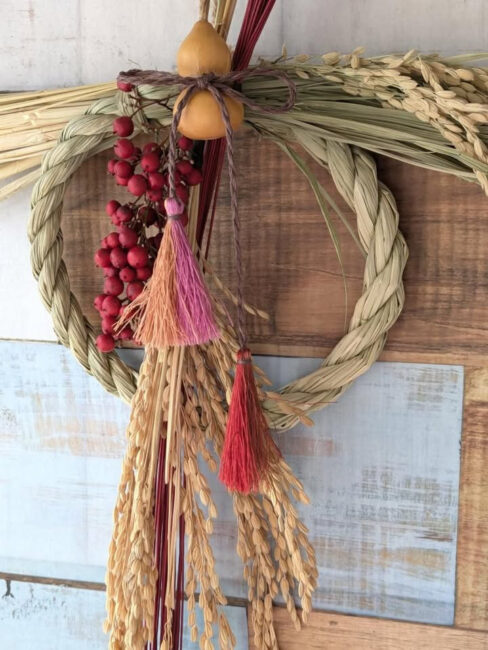 「草木染め糸の手作りタッセル」を使って「しめ縄飾り」作り